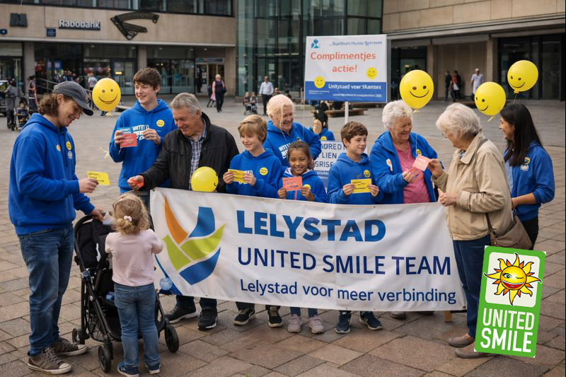 Aanvullend organiseren lokale teams doorlopende acties zoals complimentenacties, waardoor United Smile structureel aanwezig is in de wijk.