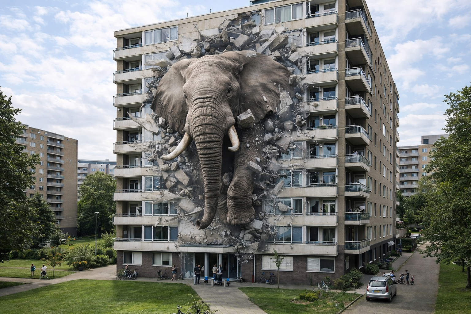 Wij helpen woningcorporaties om bewonersparticipatie zichtbaar en positief te maken — niet met vergaderingen of formulieren, maar met creatieve samenwerking en kunstprojecten die mensen raken.